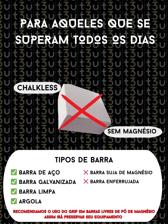 É isso mesmo, você vai se livrar de uma vez por todas da dependência de passar magnésio no grip e na mão, (seu coach agradece), tornando assim possível alcançar grandes números de repetições unbroken, sem perder tempo para passar o pó e manter uma pegada firme em wods intensos e volumosos.